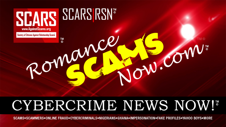 SCARS, RSN, Romance Scams Now, SCARS|GLOBAL, SCARS, Society of Citizens Against Relationship Scams, Society of Citizens Against Romance Scams, SCARS|ANYSCAM, Project Anyscam, Anyscam, SCARS|GOFCH, GOFCH, SCARS|CHINA, SCARS|CDN, SCARS Cybercriminal Data Network, Cobalt Alert, Scam Victims Support Group, are all trademarks of Society of Citizens Against Relationship Scams Incorporated.