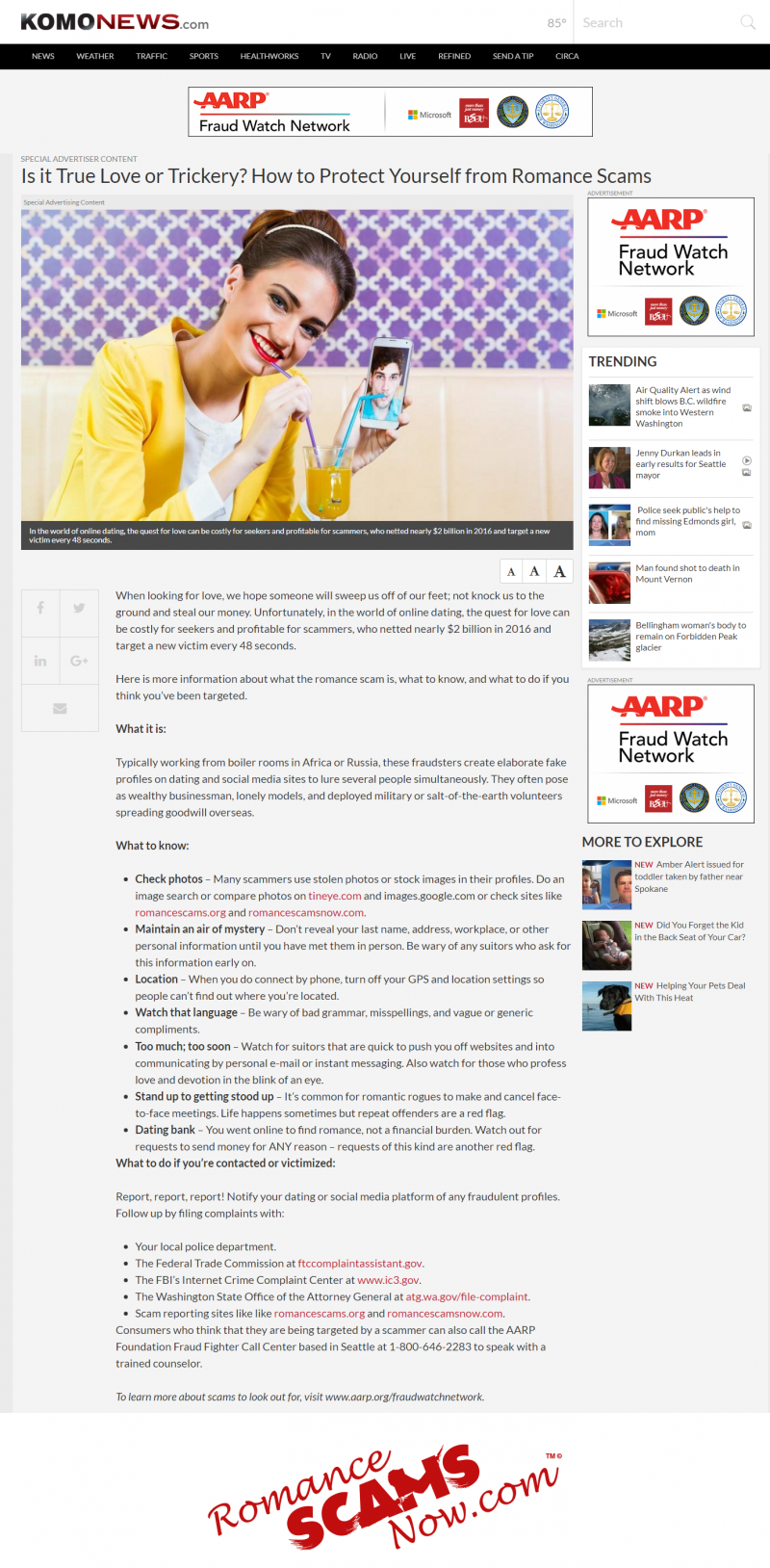 We would like to thank the AARP for Featuring Romance Scams Now!