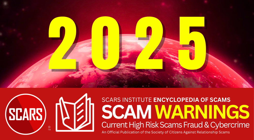 SCARS, RSN, Romance Scams Now, SCARS|WORLDWIDE, SCARS|GLOBAL, SCARS, Society of Citizens Against Relationship Scams, Society of Citizens Against Romance Scams, SCARS|ANYSCAM, Project Anyscam, Anyscam, SCARS|GOFCH, GOFCH, SCARS|CHINA, SCARS|CDN, SCARS|UK, SCARS Cybercriminal Data Network, Cobalt Alert, Scam Victims Support Group, are all trademarks of Society of Citizens Against Relationship Scams Incorporated.